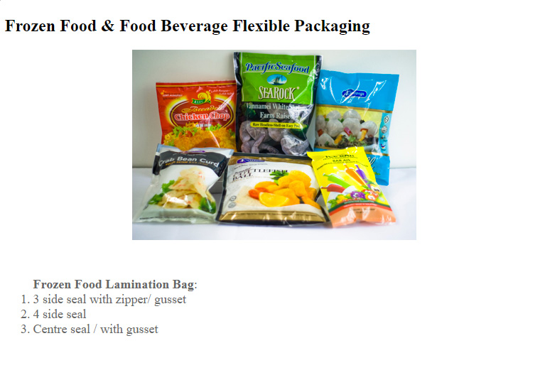 Frozen Food & Food Beverage Flexible Packaging